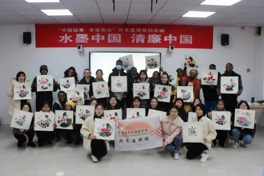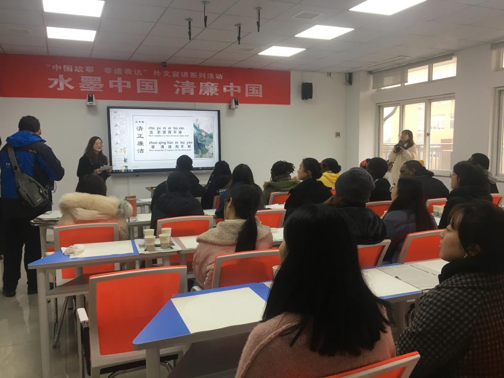 以“水墨中国 清廉中国”为主题,在李达三外语楼举办了一场寓教于乐的外文宣讲系列活动。学院党委负责人、学生工作兼纪委负责人以及中外学生30余人参加了此次活动。