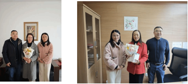 前几年的发展过程中所做出的卓越贡献表示了由衷的感谢,并对其辛勤工作和无私奉献的精神给予了高度评价。他们为两位老师送上了鲜花和慰问品,致以节日的问候和崇高的敬意。