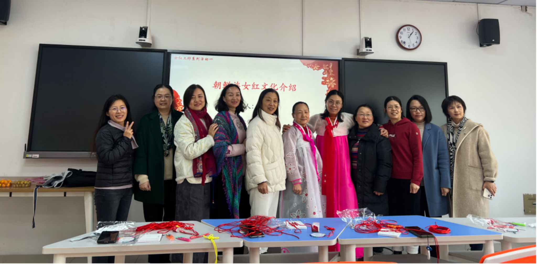 随后,妇女老师们积极参与了迎新年中国结的制作。中国结作为中国传统手工艺品的代表,寓意着吉祥、团结和幸福。老师们一边学习编织中国结的技巧,一边互相交流心得,共同完成了一件件精美的作品。