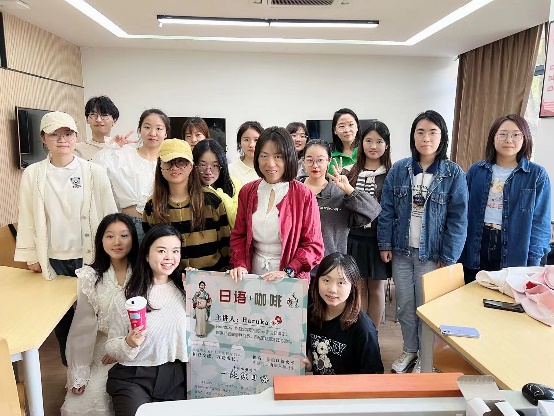 日语咖啡现场气氛活跃,在口语交流学习中,同学们既收获了学习实践,也增进了师生感情,收获颇丰。活动尾声,同学们都用日语表达了对Haruka外教的真挚感谢,还同Haruka外教合影留念留下了难忘的回忆。
