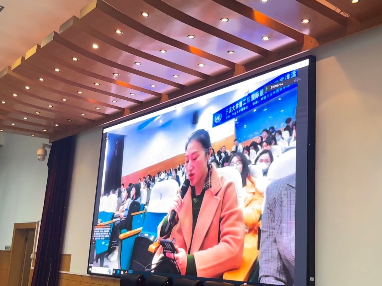 活动激发了在场学生对国际事务的热情,从而激励更多宁大学子进入国际组织实习工作,投身“人类命运共同体”的伟大实践,向世界讲好中国故事、传播好中国声音、展现可信、可爱、可敬的中国形象。