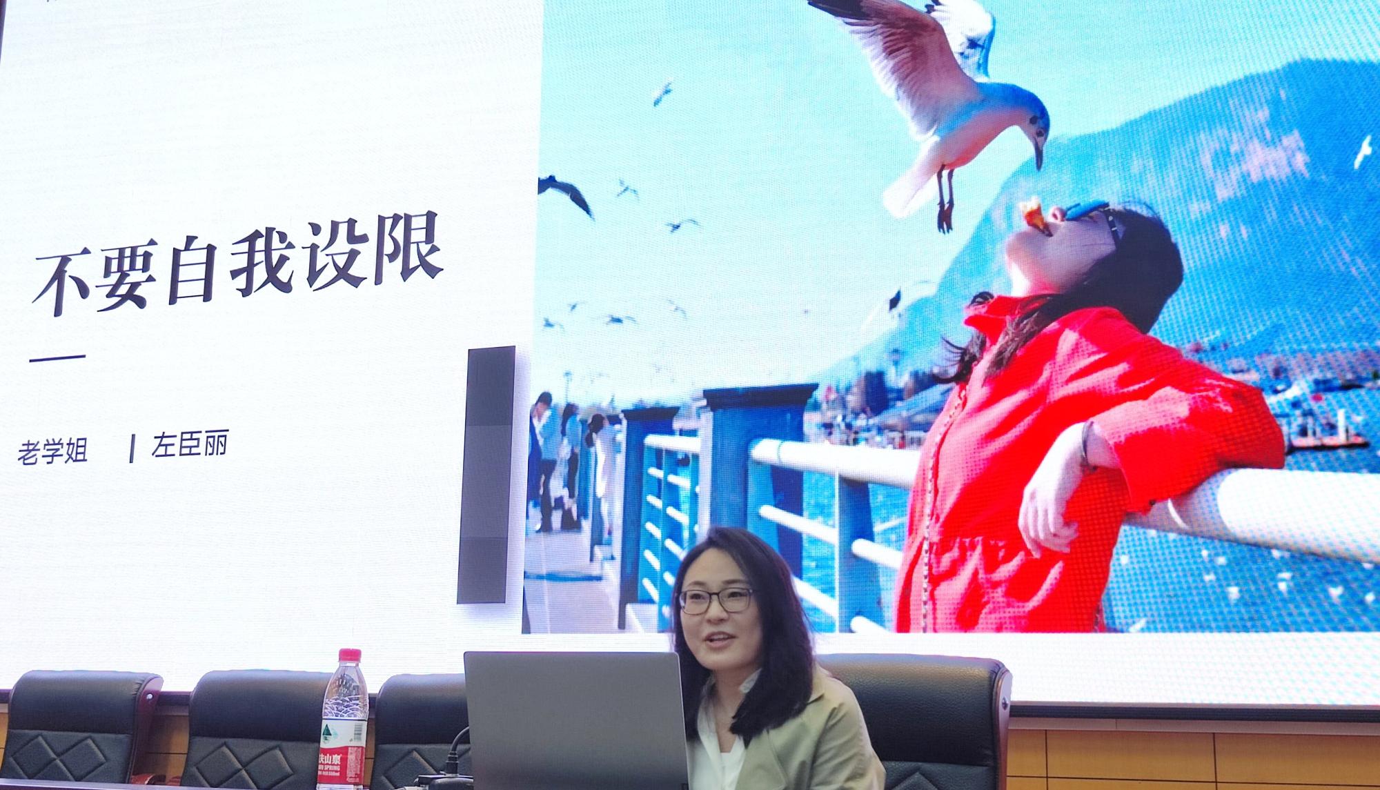 2007级英语专业校友左臣丽应邀担任主讲人。学院党委书记翁华星、校友工作联络人和120余名本硕学生参加本次活动。