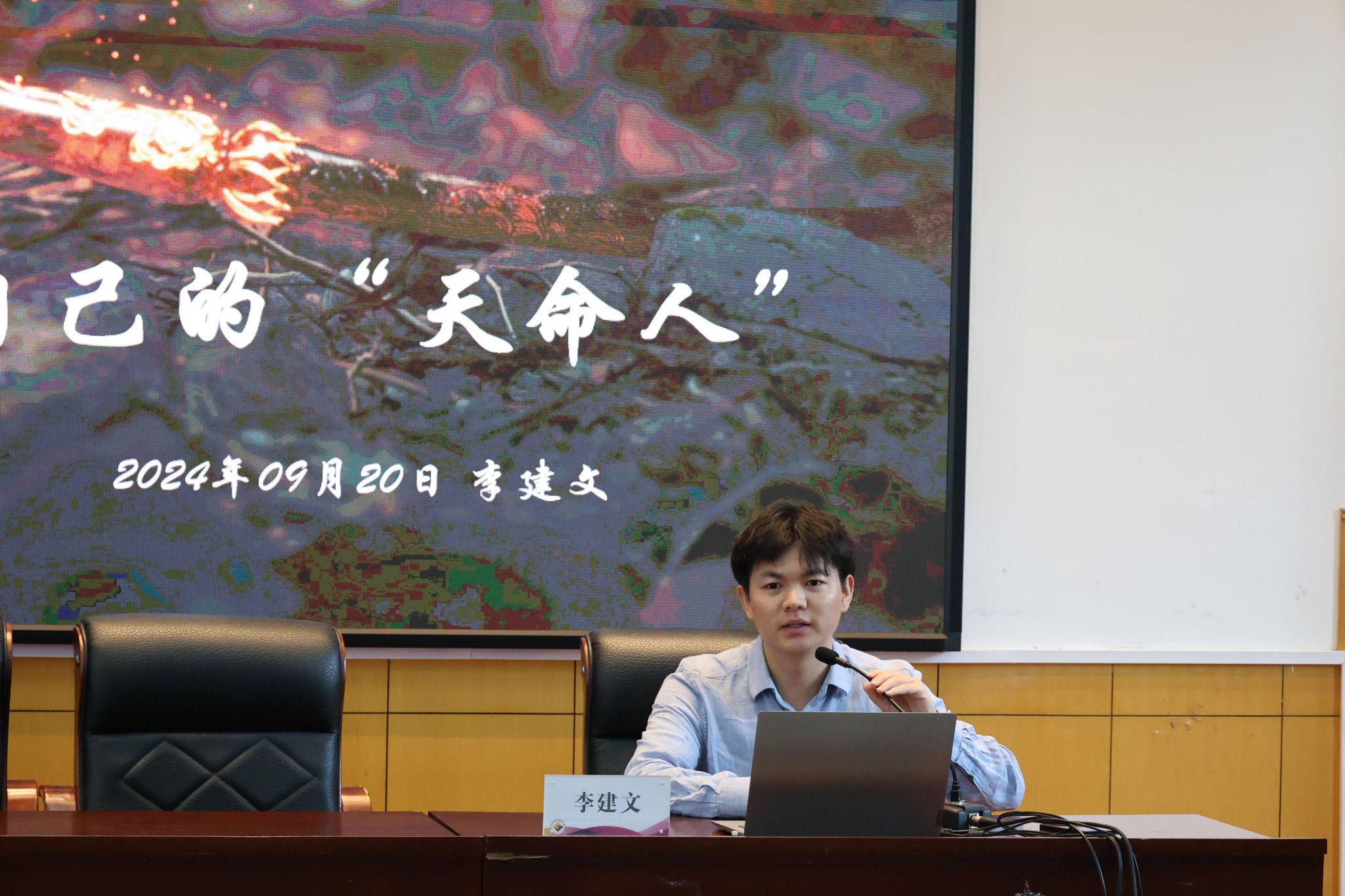 李建文以游戏《黑神话:悟空》为切入点,提出要做自己的“天命人”。他从自己的实习工作经历出发,分享了自己在中国外文局、中东欧博览会、镇海炼化等实习工作中的心得体会,强调了专业的语言能力与拓展知识技能的重要性,同时希望同学们能够立足专业、勇于突破,不给职业设限制。