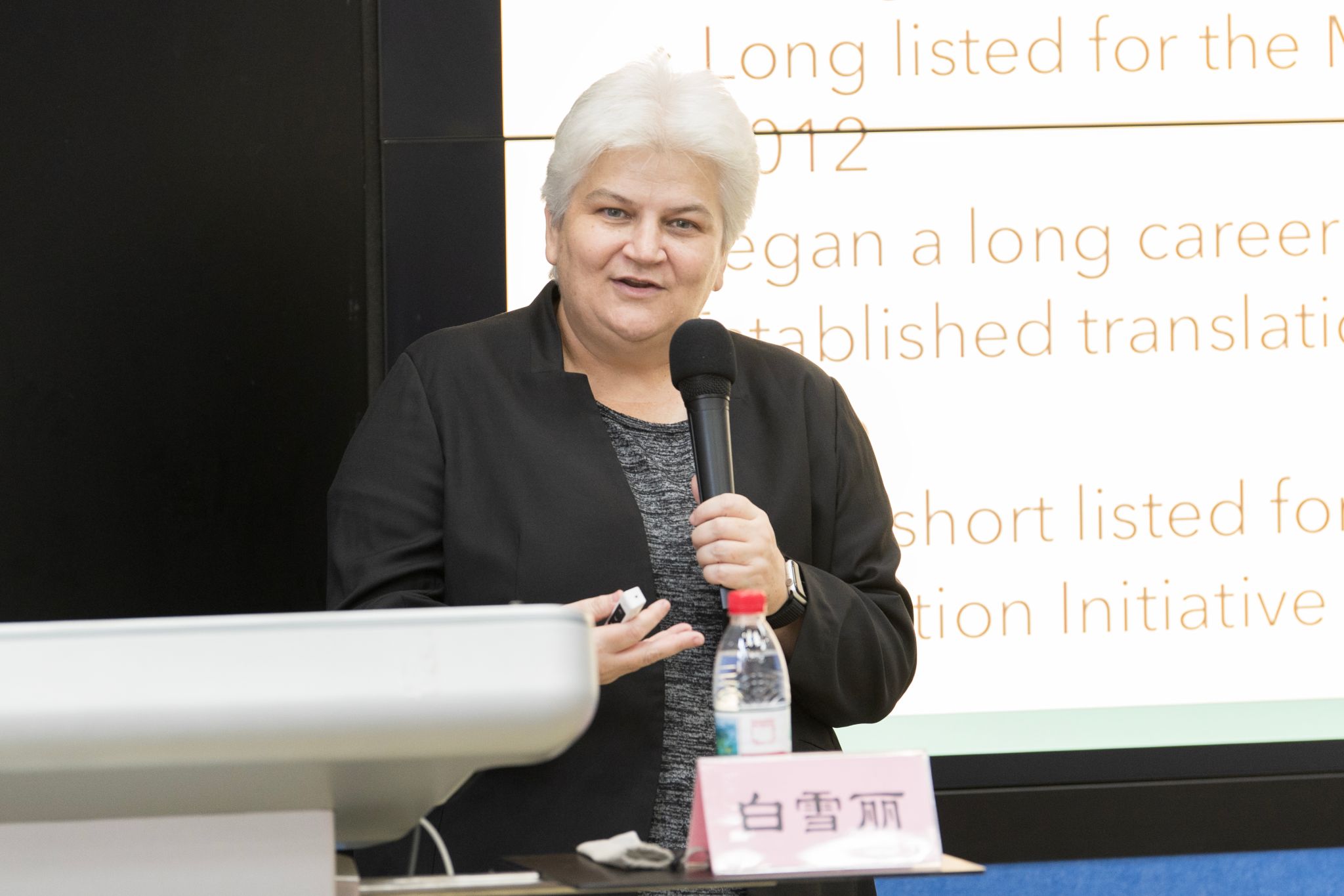 白雪丽以自身经历为切入点,分享了从作家、诗人转向文学翻译的心路历程。她结合多年在华生活经历,强调了沉浸式语言环境对理解中文微妙之处的重要性,并鼓励翻译专业学生夯实学术基础、系统提升翻译素养,为未来职业发展筑牢根基。