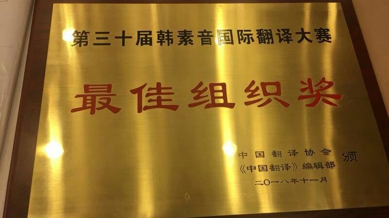 因在本届赛事中取得的成绩与良好组织工作,被中国翻译协会授予“最佳组织奖”的殊荣。