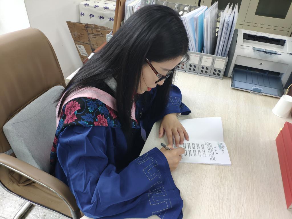 研究生171班的毕业生胡月在收到这本手册后,就在开篇的廉洁自律承诺书上签下了名字,她说:“参加完今天的毕业典礼、收到学院的这份礼物后,我意识到廉洁从业其实跟我们每个人都息息相关。日后我也会经常翻阅《廉洁从业手册》,时时刻刻提醒自己要坐得更端、行得更正才能走得更稳、更远”。