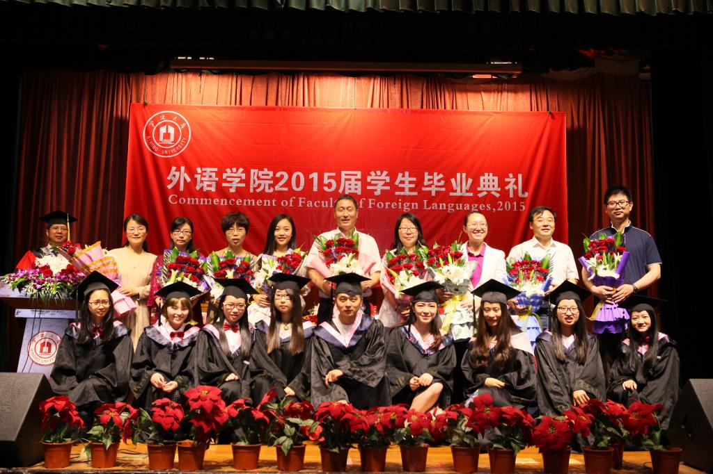 6月5日上午,外语学院2015届毕业典礼在锦绣小剧场举行。外语学院党政领导、毕业班班主任以及学院各系部主任出席,全体毕业生参加。