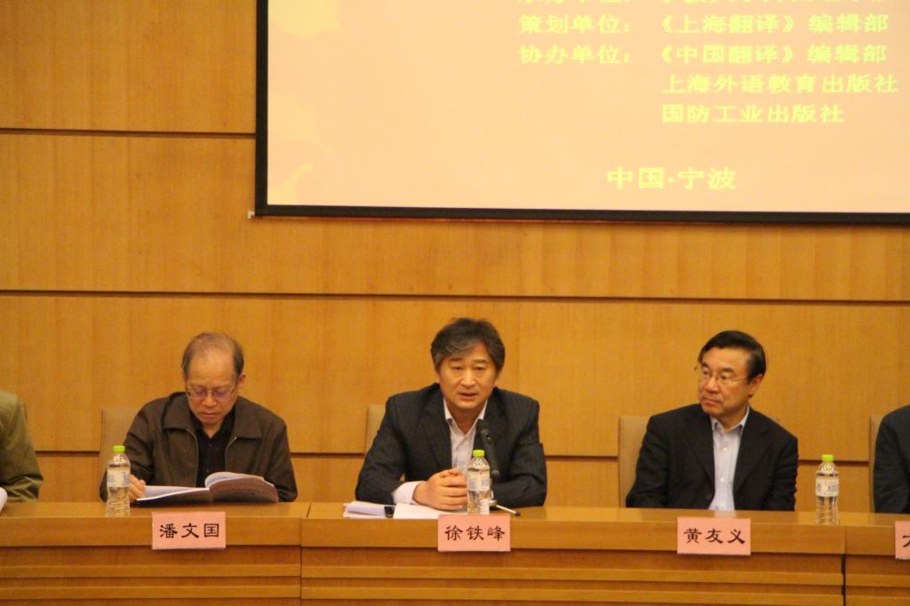 院长屠国元教授介绍了外语学科的发展与成绩,梳理了浙江翻译的历史与现状。主席台就坐嘉宾还有国务院学位委员会委员、中国译协常务副会长黄友义教授、中国应用翻译研究的开创者方梦之教授、中国英汉语比较研究会名誉会长,华东师范大学终身教授潘文国教授。