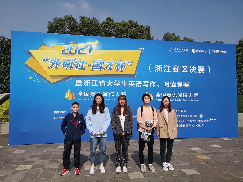 阅读比赛和写作比赛在浙大城市学院同日举行,全省共44所高校220名选手参赛,我校5名参赛选手分别是罗惠玥、李羽帆、史中欣、王静和潘开颜同学。最终李羽帆同学获一等奖、罗惠玥同学获二等奖,史中欣和王静同学获三等奖。