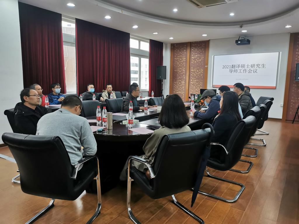 2021年翻译硕士专业学位研究生导师工作会议在李达三外语楼422会议室举行。本次会议由翻译硕士教育中心主任黄大网博士主持,院长屠国元出席会议并讲话,贺莺教授、符荣波教授和濮阳荣老师做主题分享,学院翻译硕士研究生导师参加本次会议。