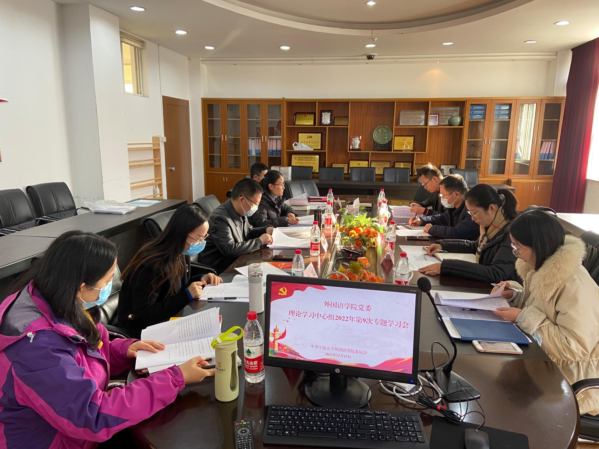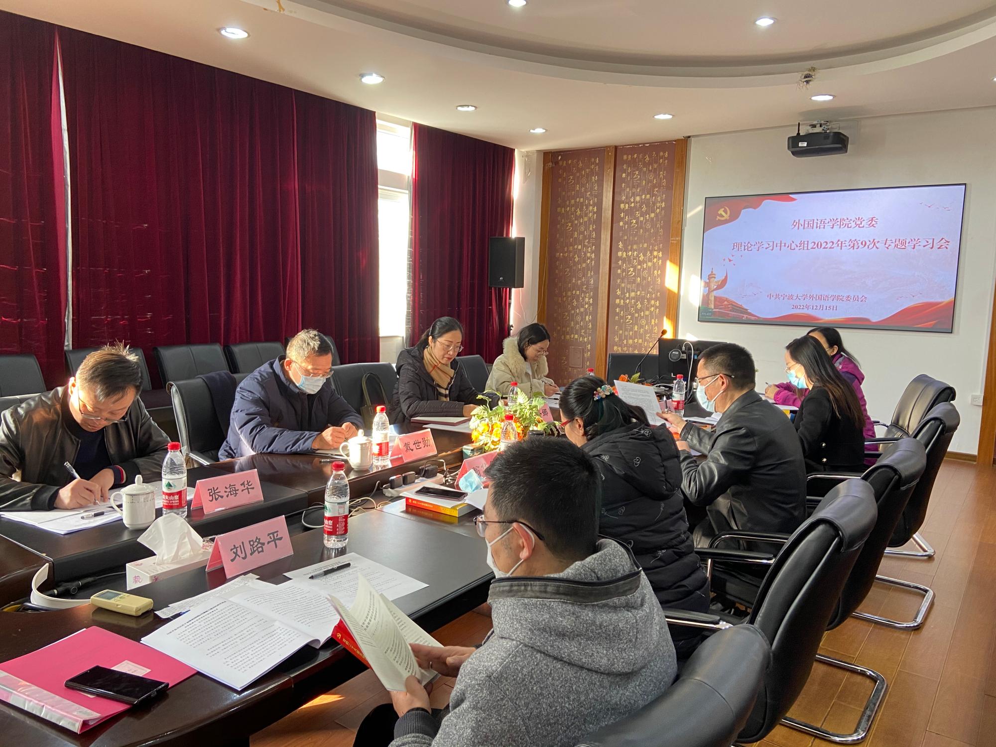 1215日上午,黄色网站 党委召开理论学习中心组学习会,结合外语学科建设与发展进一步深入学习党的二十大精神。校党委委员、组织部部长戴世勋列席巡听,法学院党委书记孙芬娜,校学生发展与服务处副处长张海华、校党委组织部王珂老师一行列席旁听。