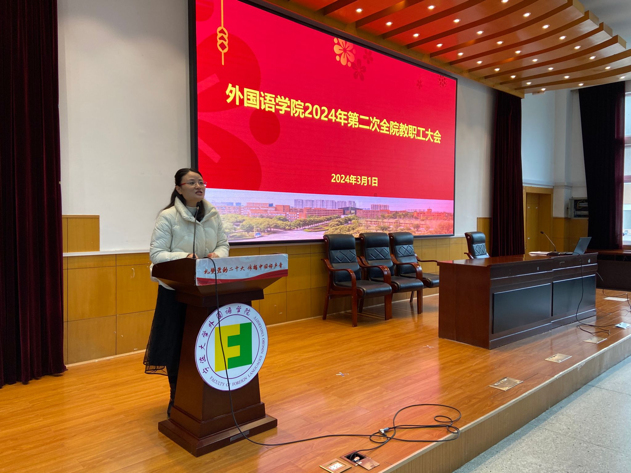 学院党委书记翁华星传达了学校2024年寒假中层领导干部扩大学习会会议精神,强调了教育教学审核评估的重要意义,提出了工作要求;并结合最近社会上发生的若干起消防安全事件强调要高度重视并落实好新学期安全工作,同时持续加强师德师风建设,为学院各项工作顺利开展保驾护航。