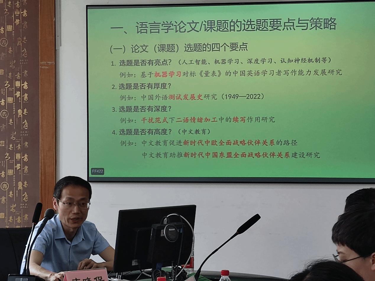副院长、外国语言研究所所长、认知神经语言学实验室主任韦晓保教授在422会议室以“语言学论文(课题)之选题策略、设计与方法”为题,为黄色网站