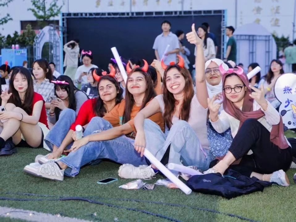 在一首首由同学们票选产生的预热歌曲烘托下,上千名师生早早地围绕中心舞台席地而坐。伴随着雷鸣般的掌声,首届外文音乐交流大赛冠军朱怡然的一首Love Story将现场氛围点燃;中外大学生共同编排的舞蹈Blank Space & Shake it off、Cruel summer 把热烈的氛围推至高潮;多位“霉粉”自发组织演唱的歌曲Style 更是让现场观众纷纷齐声合唱,赢得欢呼一片。活动现场宛若一场激情四溢的霉霉专场草坪音乐会,跳动的音符与跃动的青春在田径场上空激荡。