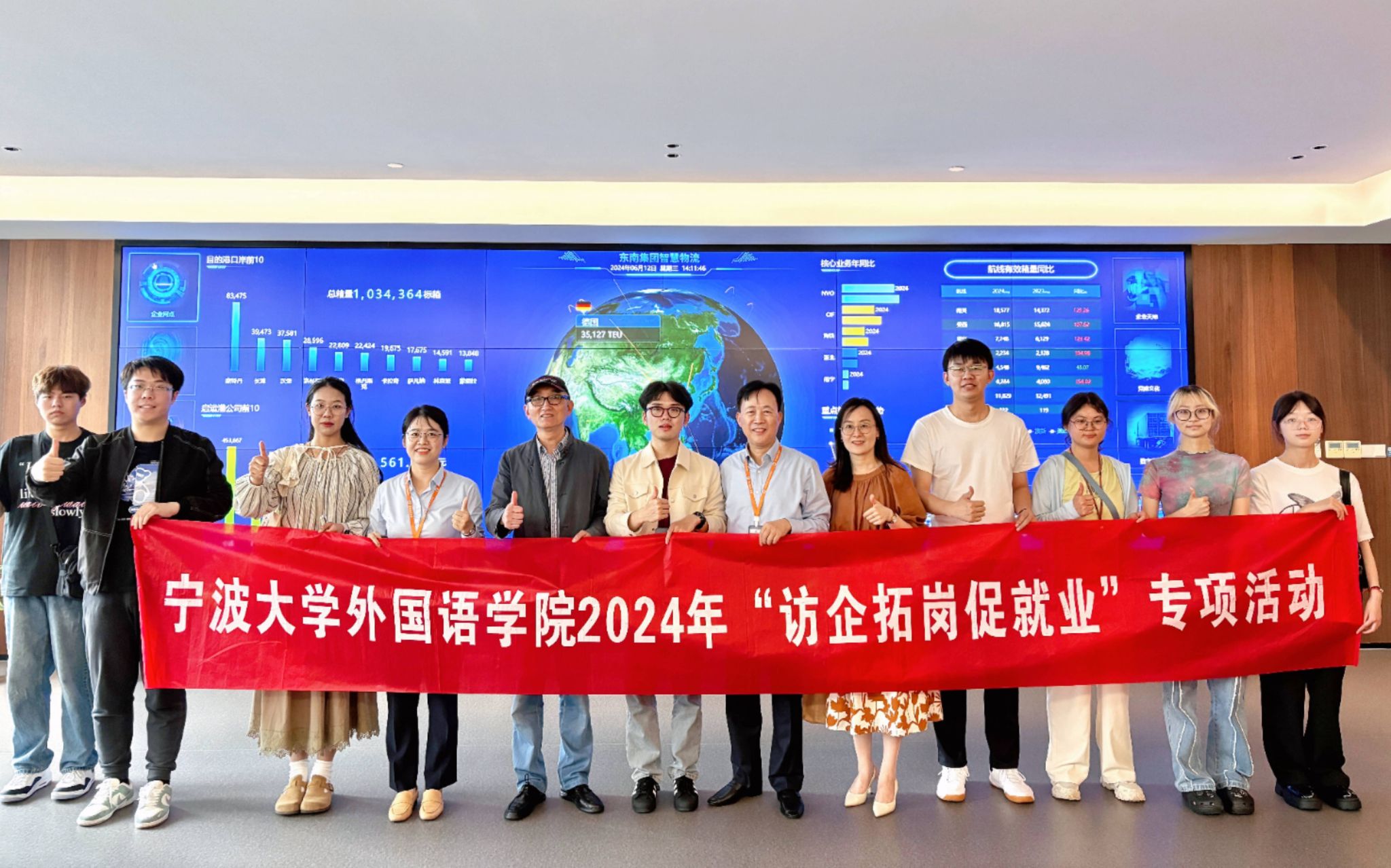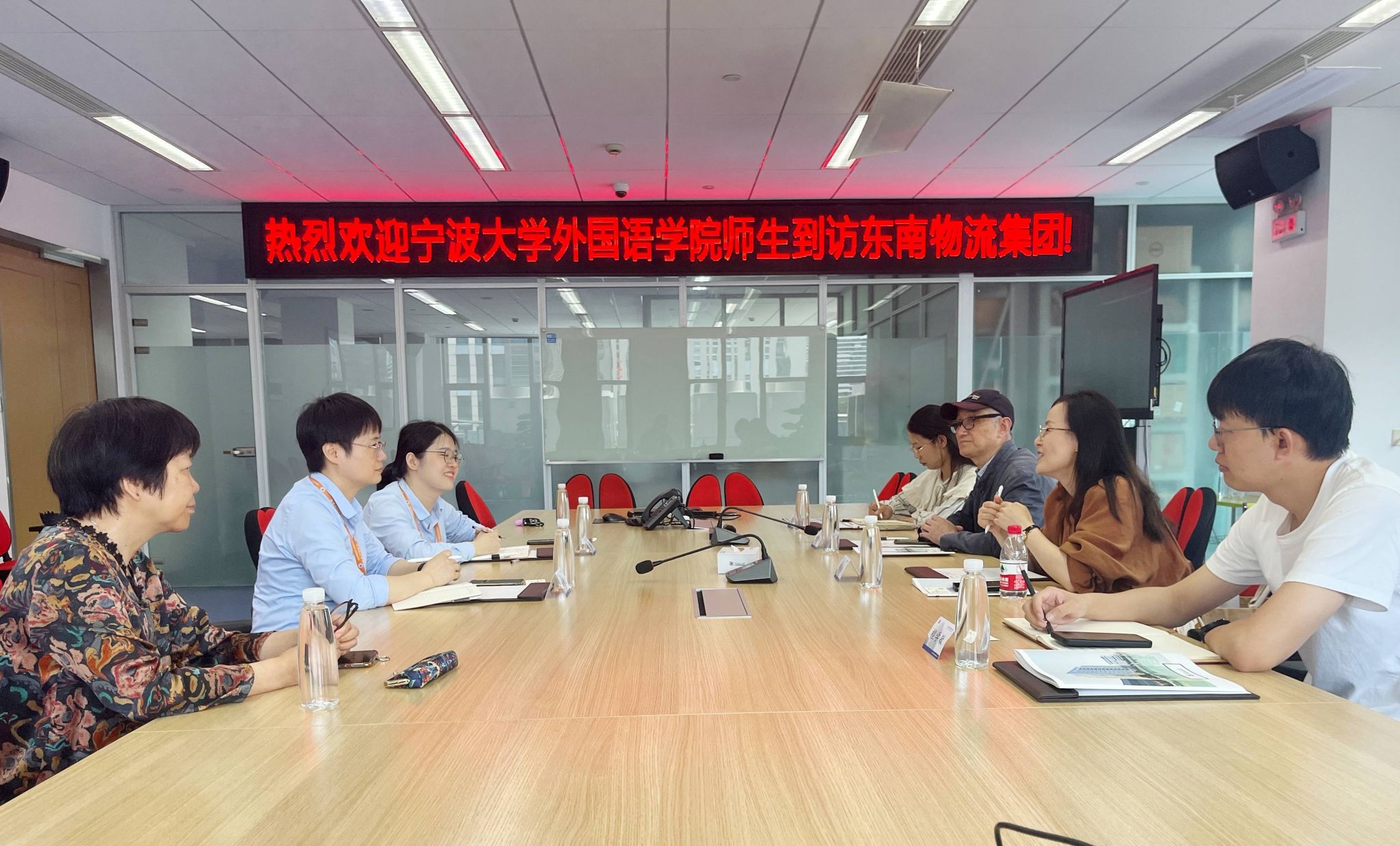 原党委书记、关工委副主任盛育冬、党委副书记胡佳、就业辅导员檀学敏、辅导员范紫婴、学生代表等十余人赴东南物流集团宁波总部走访交流。东南物流集团董事长贾骏、办公室主任杨静波、党群办副主任徐阳芳、人事经理单贤怡亲切接待。