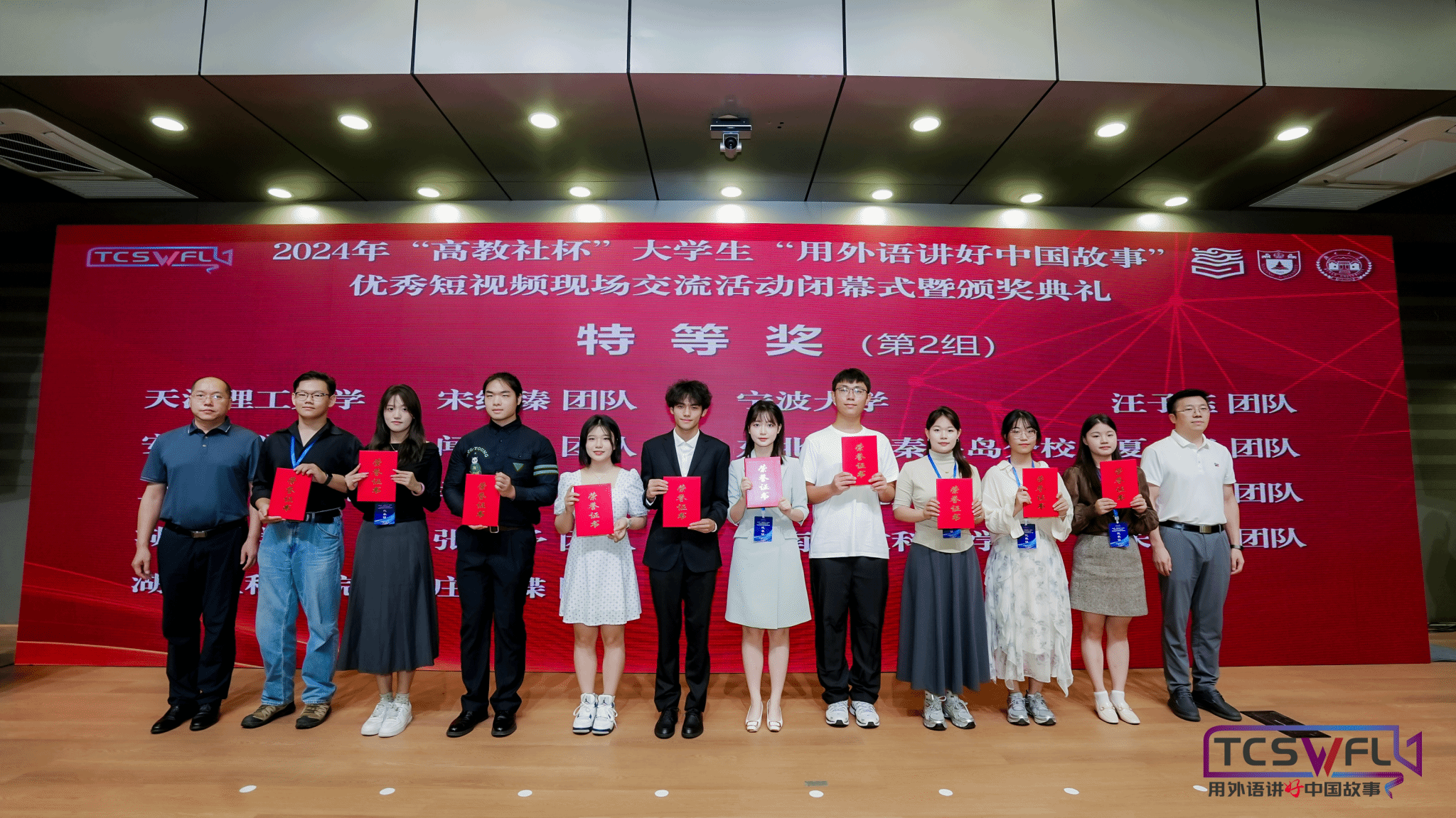 英语212班汪子钰团队制作的短视频作品《“衣”路繁花:宁波红帮的百年创智之旅(Ningbo Hongbang Tailors:Where Legacy and Modernity Are Threaded)》(团队成员:汪子钰、孙芝丹、邱婷婷、季佳仪、张锐琦,指导老师辛红娟、檀学敏)荣获全国特等奖,辛红娟获优秀指导教师,我校荣获优秀组织奖。